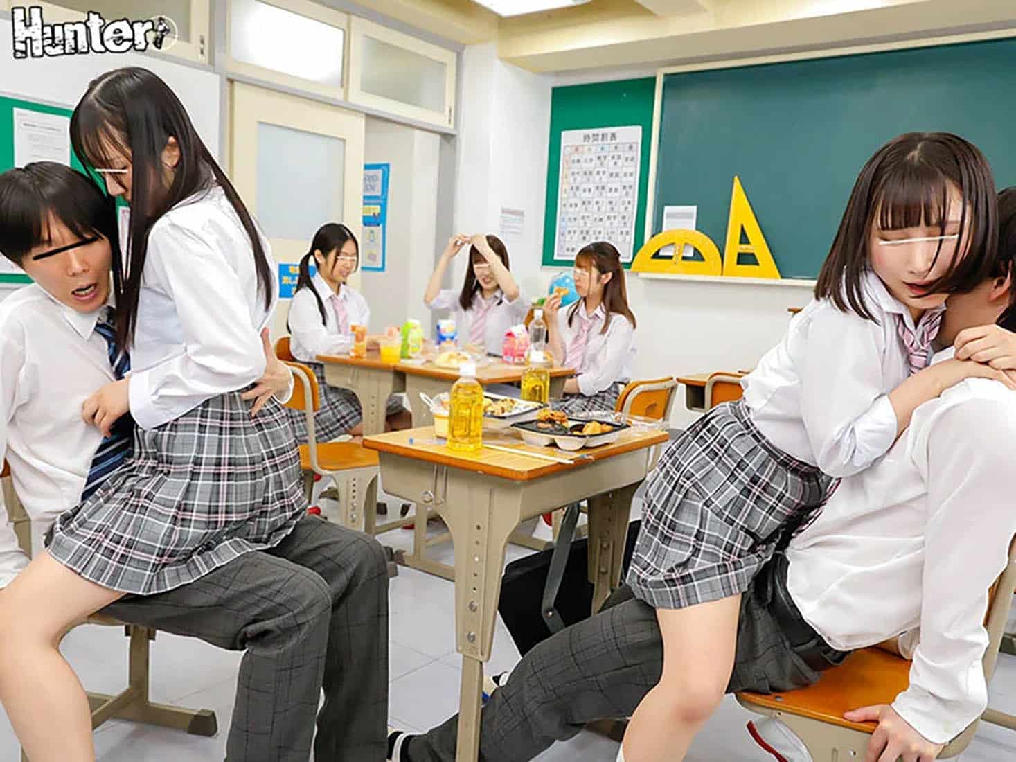 教室がヤリ部屋☆JK が先生の前で男子に跨ってパンズラ挿● !!